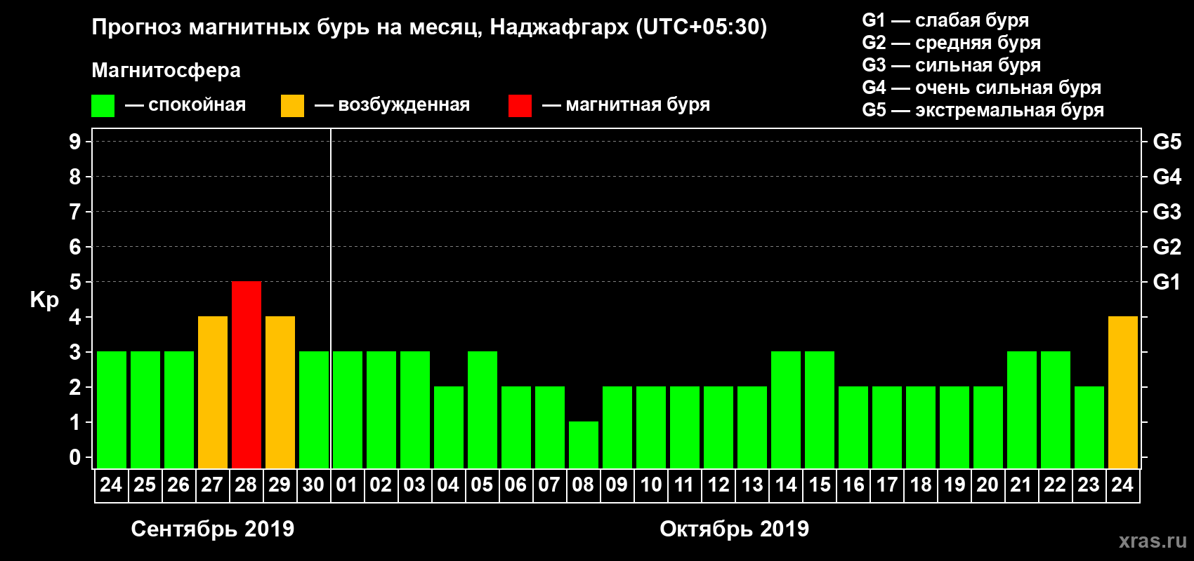 Прогноз магнитных бурь в Наджафгархе — 24 сентября 2019 года