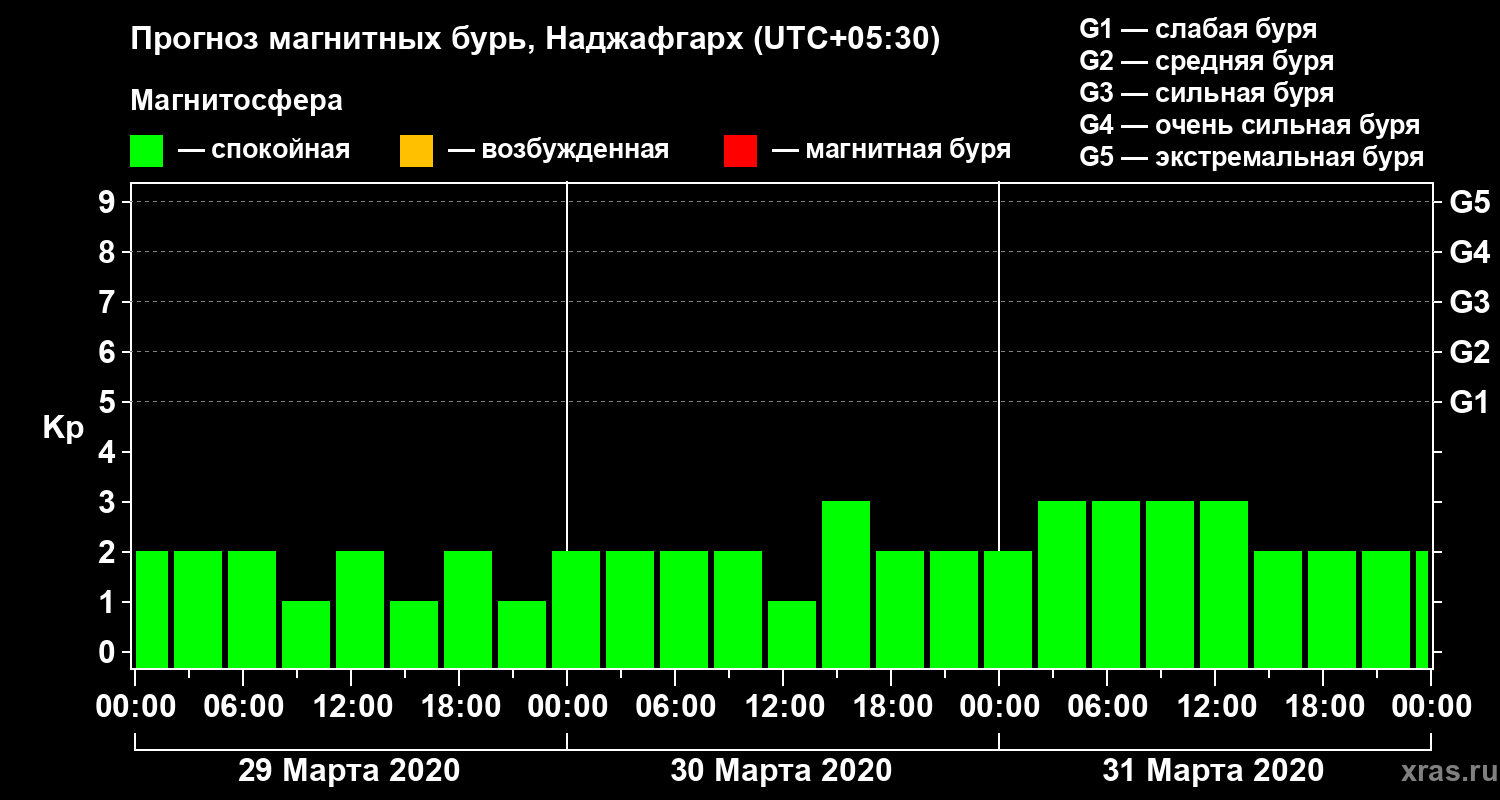 Прогноз магнитных бурь в Наджафгархе — 29 марта 2020 года