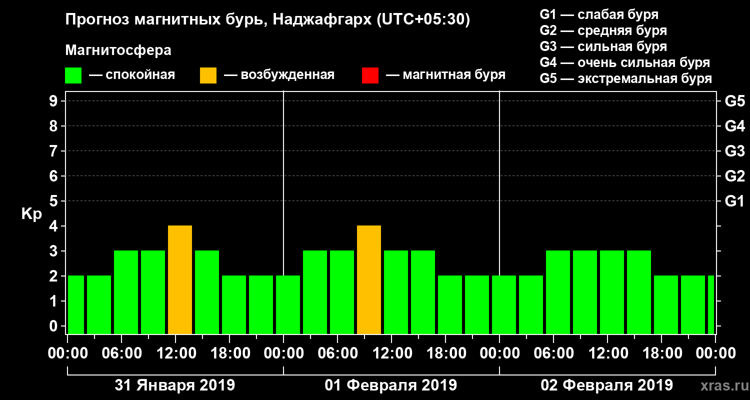 Прогноз магнитных бурь в Наджафгархе — 31 января 2019 года