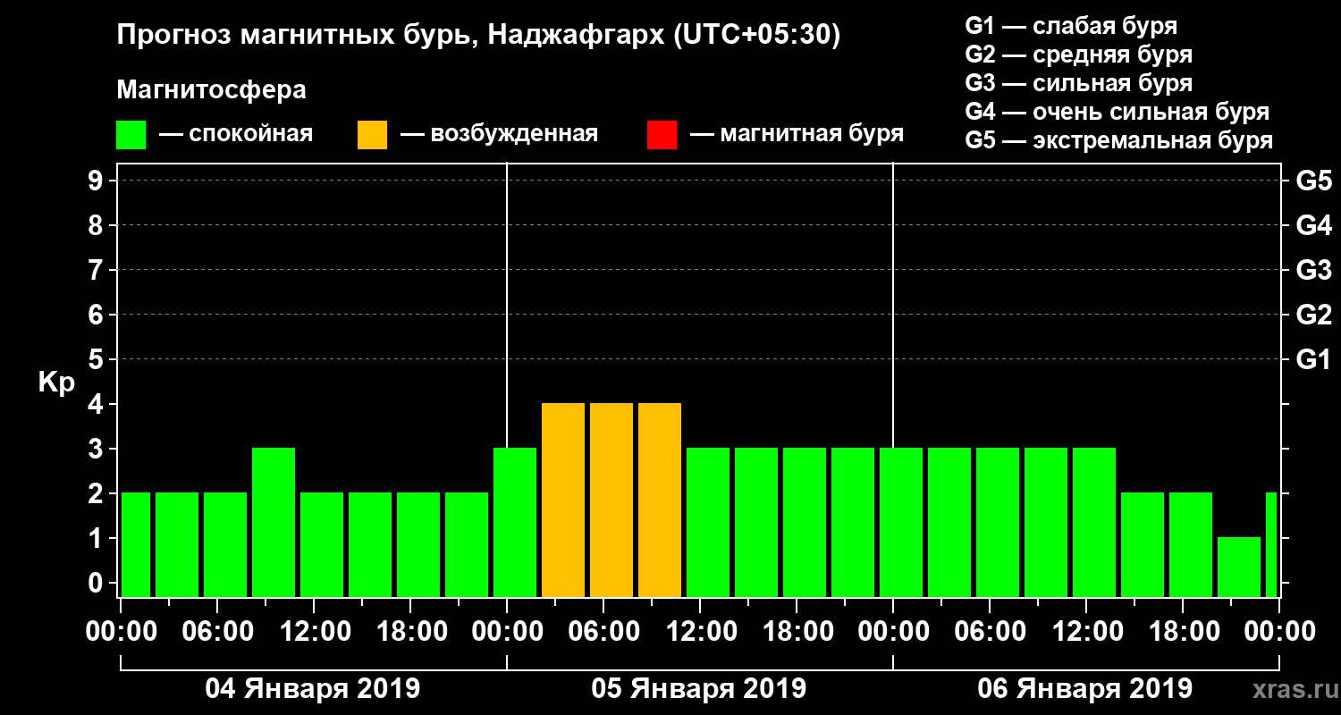 Прогноз магнитных бурь в Наджафгархе — 4 января 2019 года