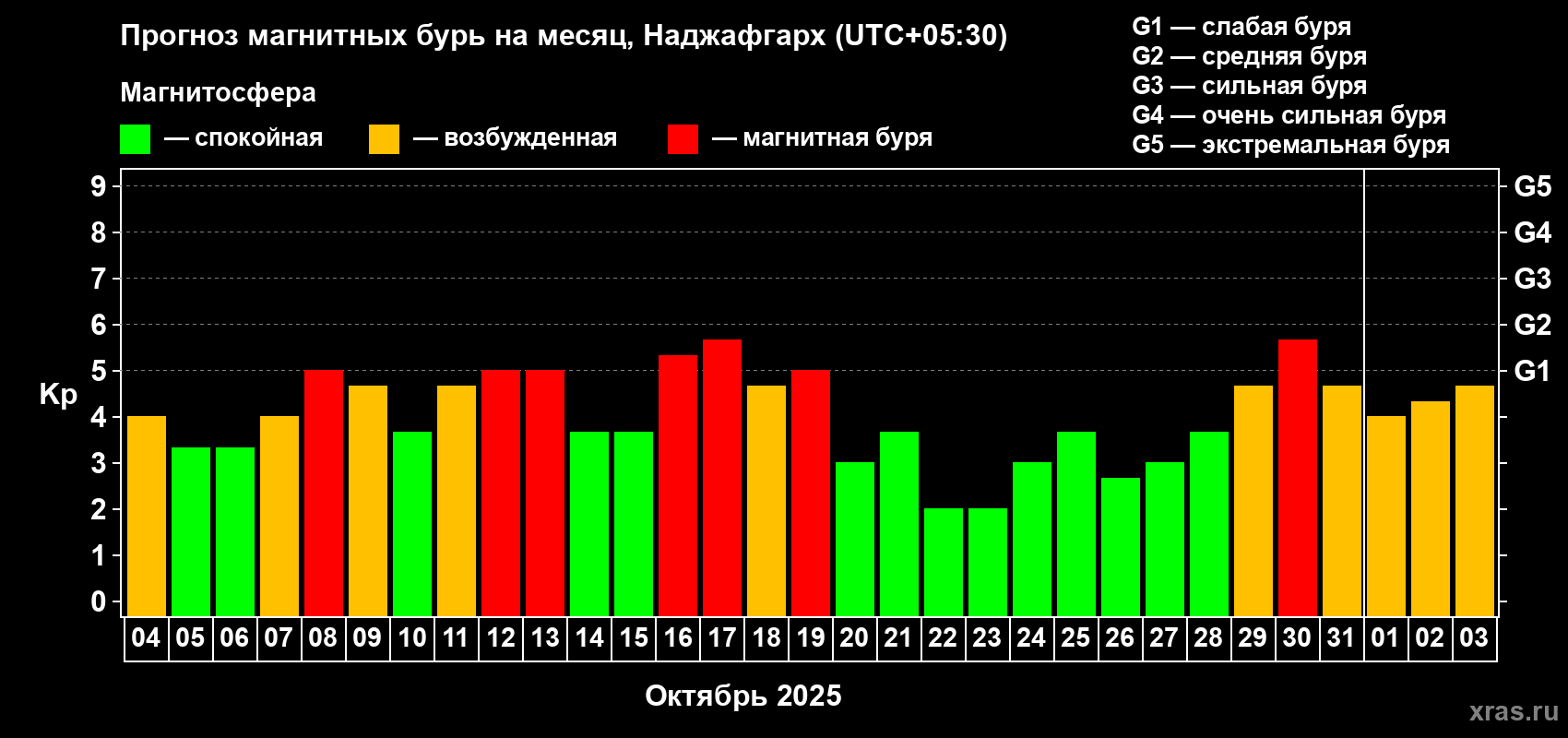 Прогноз магнитных бурь в Наджафгархе — 4 октября 2025 года