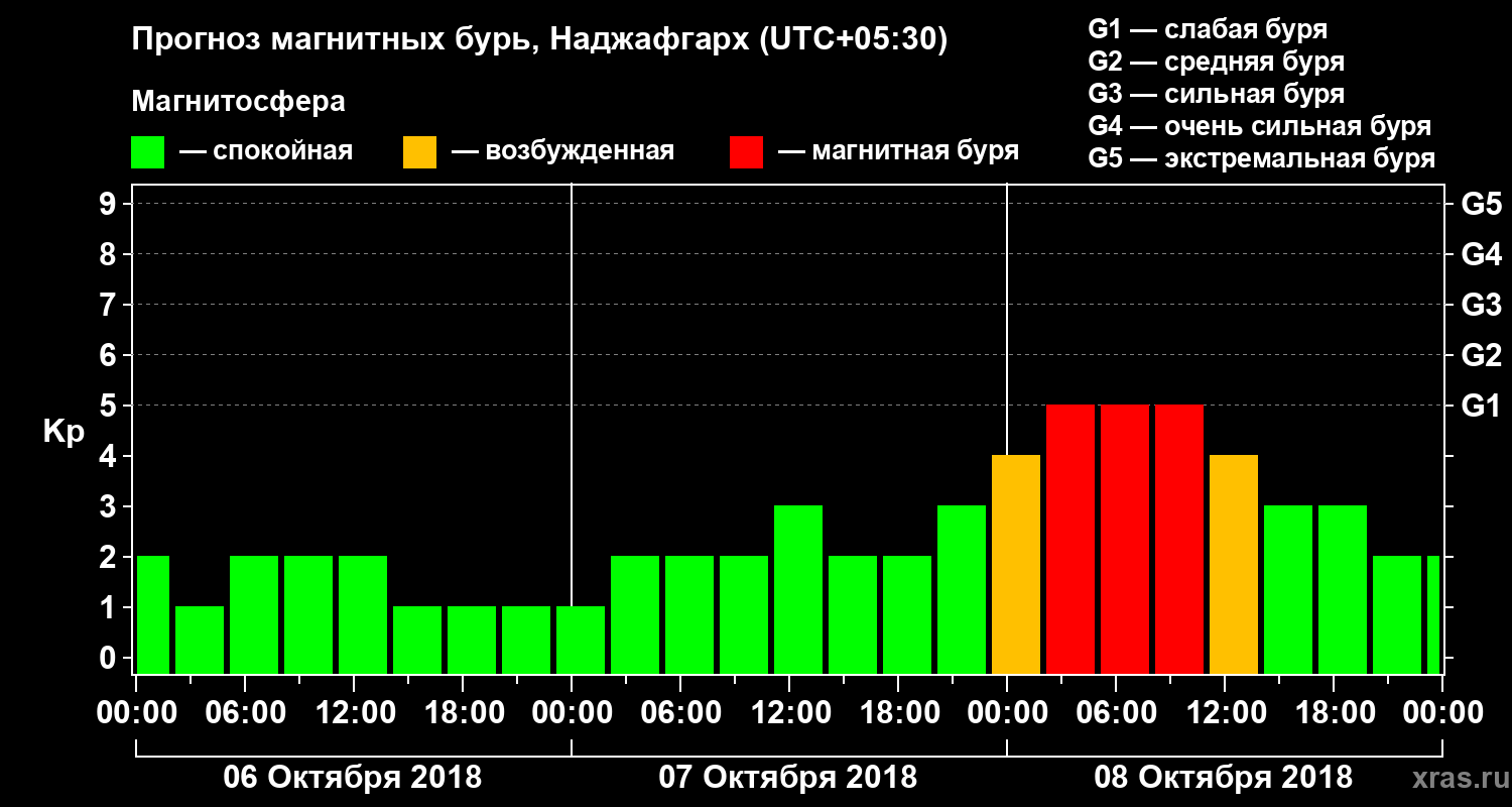 Прогноз магнитных бурь в Наджафгархе — 6 октября 2018 года