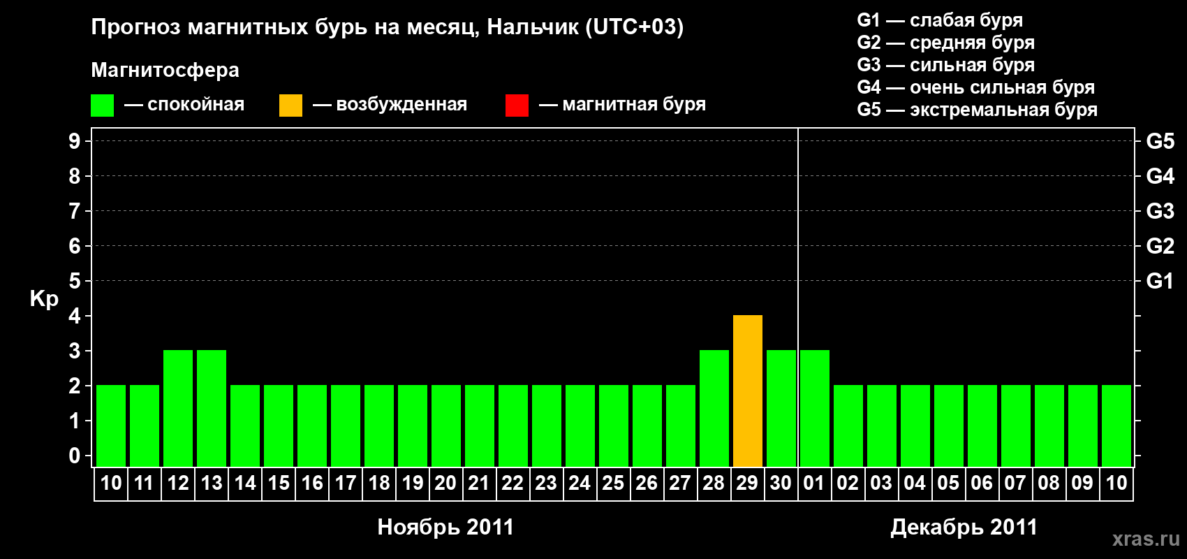 Прогноз магнитных бурь в Нальчике — 10 ноября 2011 года
