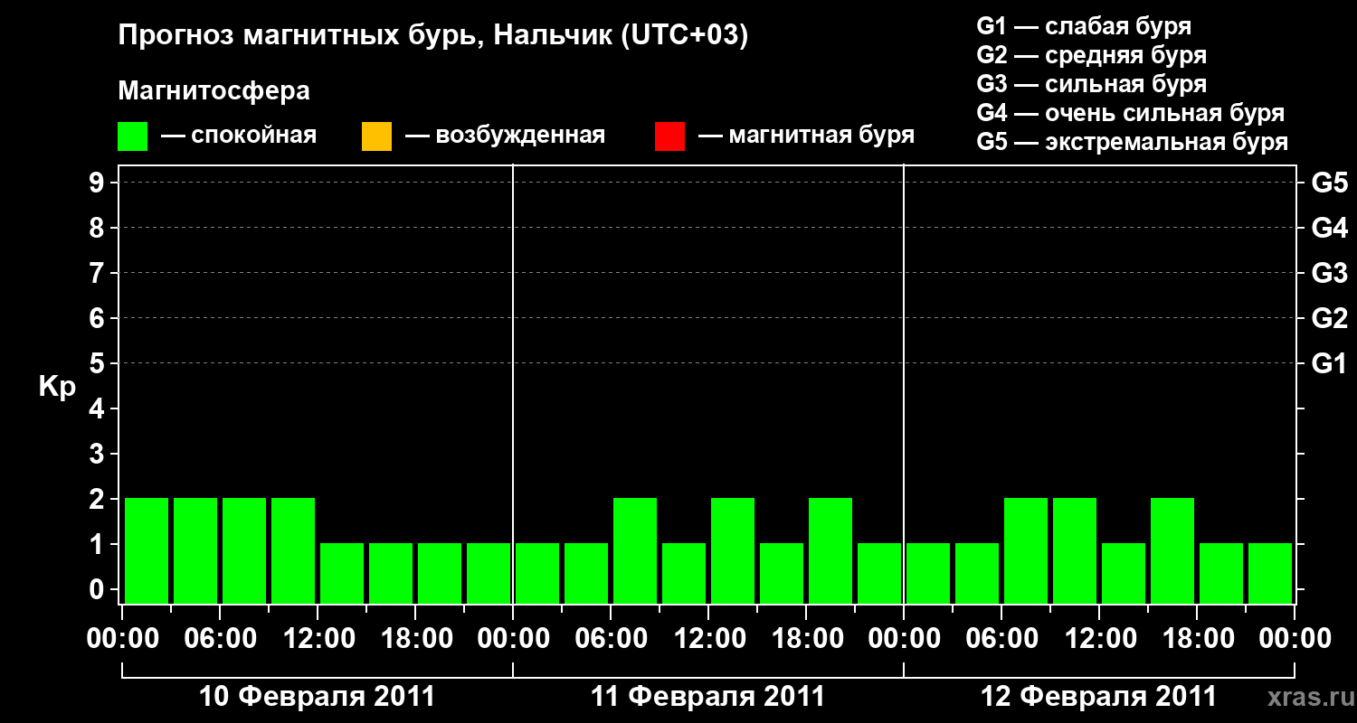 Прогноз магнитных бурь в Нальчике на 10 февраля 2011 года