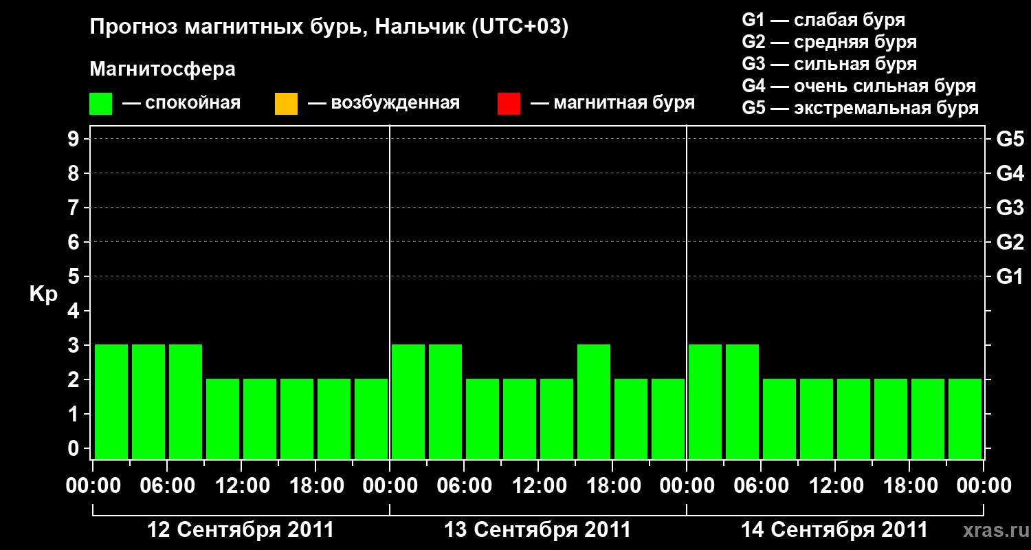 Прогноз магнитных бурь в Нальчике — 12 сентября 2011 года