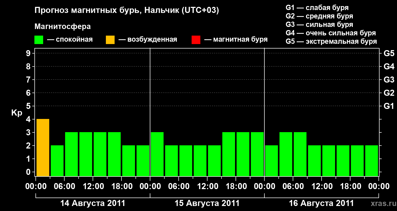 Прогноз магнитных бурь в Нальчике — 14 августа 2011 года