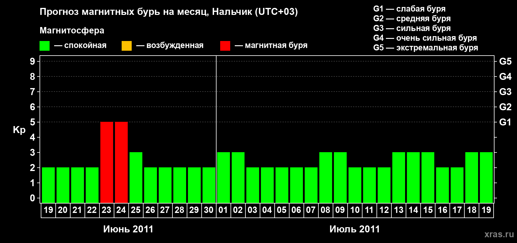 Прогноз магнитных бурь в Нальчике — 19 июня 2011 года