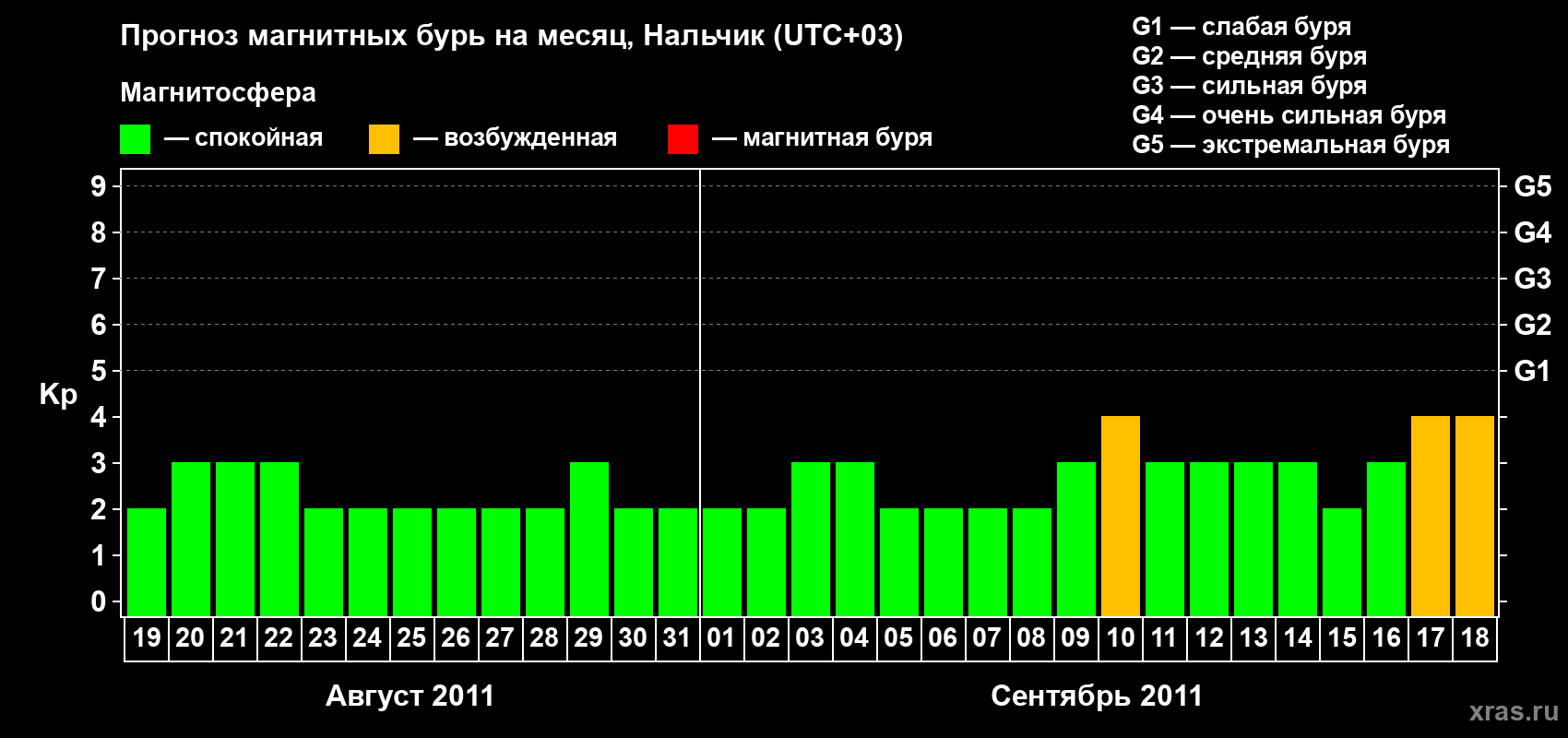 Прогноз магнитных бурь в Нальчике — 19 августа 2011 года