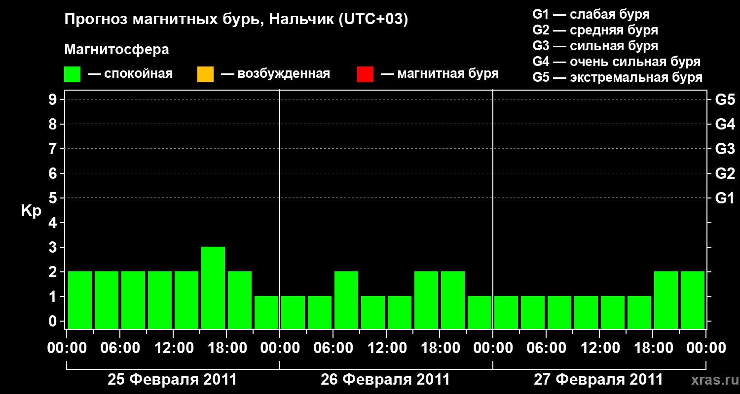 Прогноз магнитных бурь в Нальчике на 25 февраля 2011 года