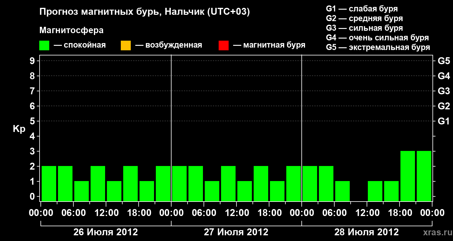Прогноз магнитных бурь в Нальчике — 26 июля 2012 года