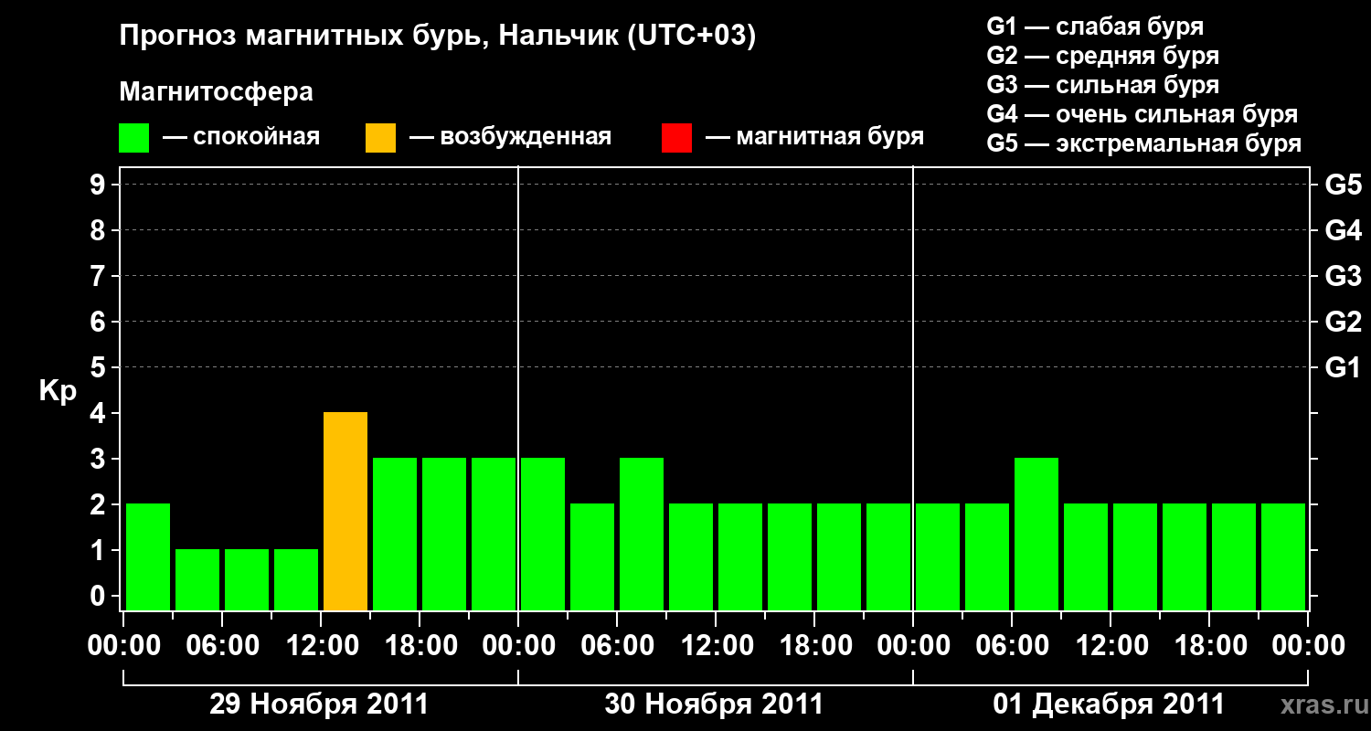 Прогноз магнитных бурь в Нальчике — 29 ноября 2011 года