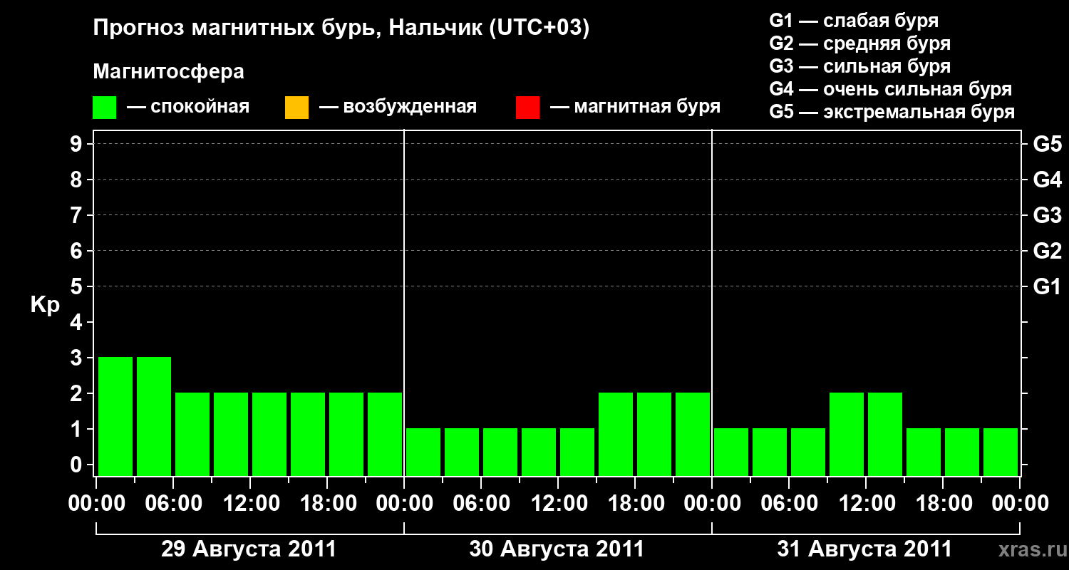 Прогноз магнитных бурь в Нальчике — 29 августа 2011 года