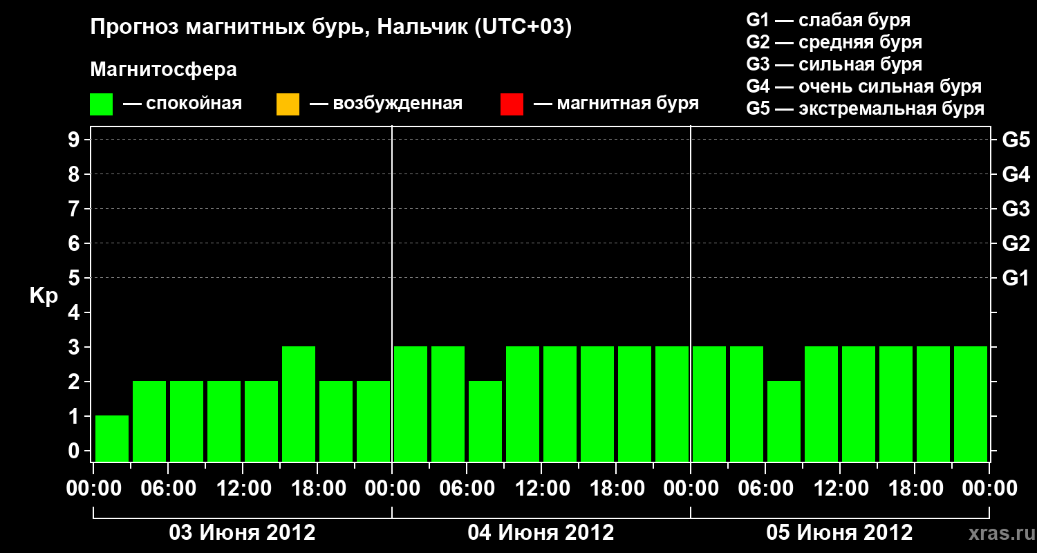 Прогноз магнитных бурь в Нальчике на 3 июня 2012 года