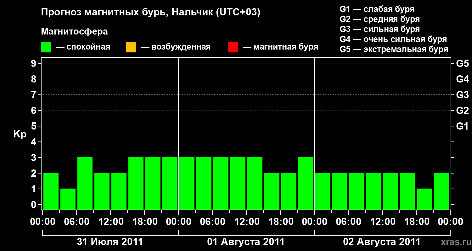 Прогноз магнитных бурь в Нальчике на 31 июля 2011 года