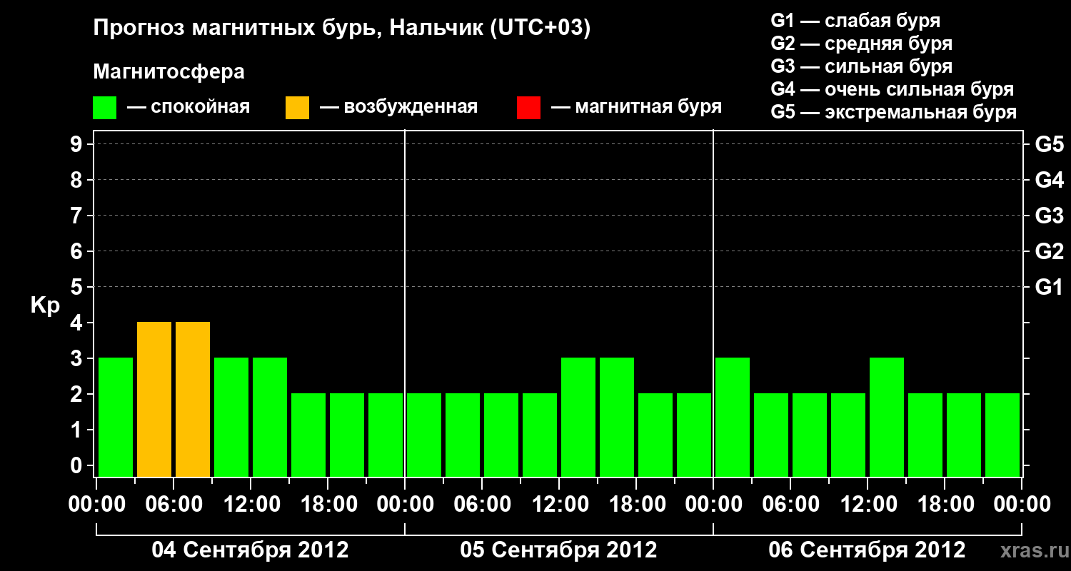 Прогноз магнитных бурь в Нальчике — 4 сентября 2012 года