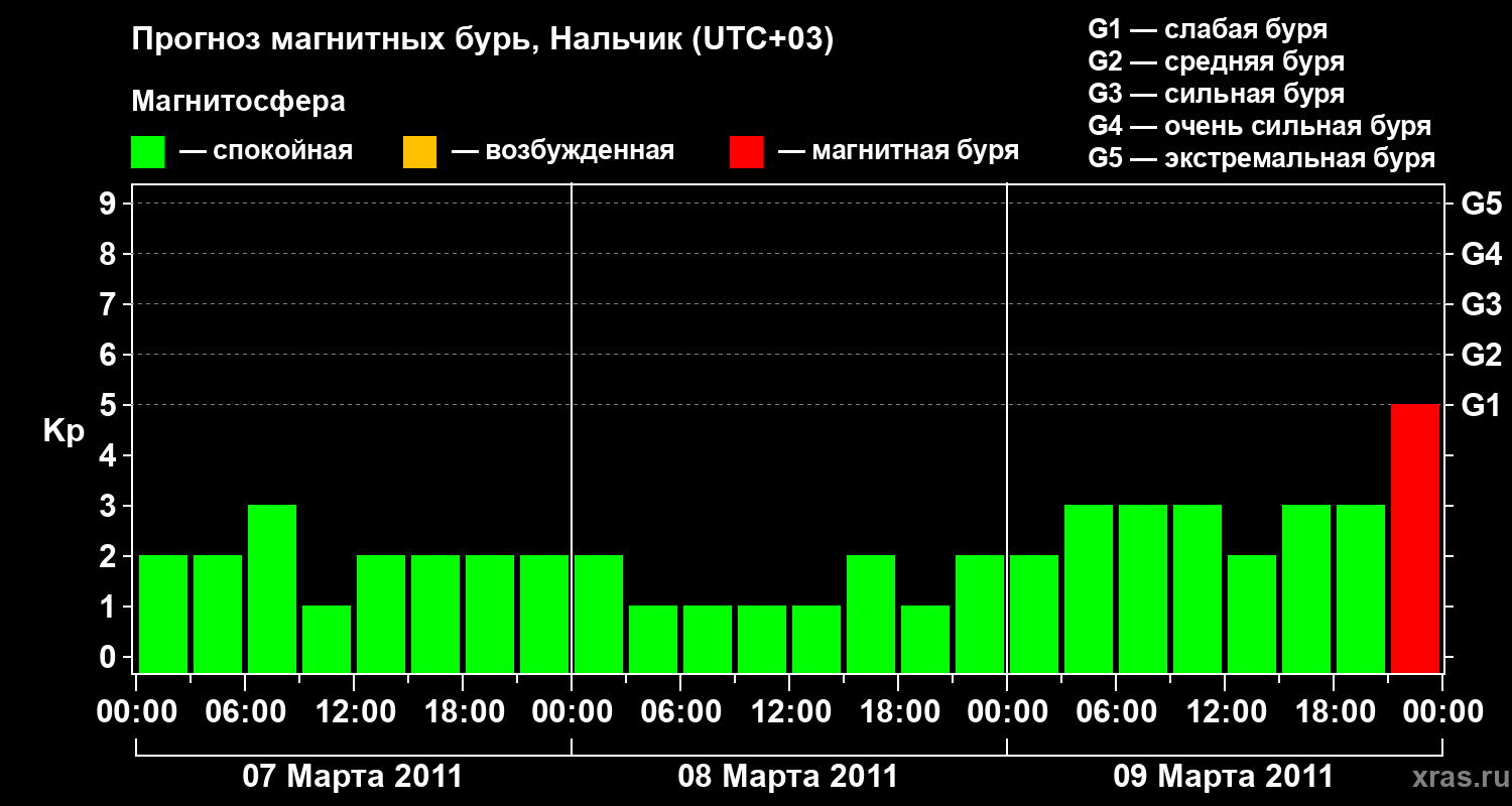 Прогноз магнитных бурь в Нальчике — 7 марта 2011 года