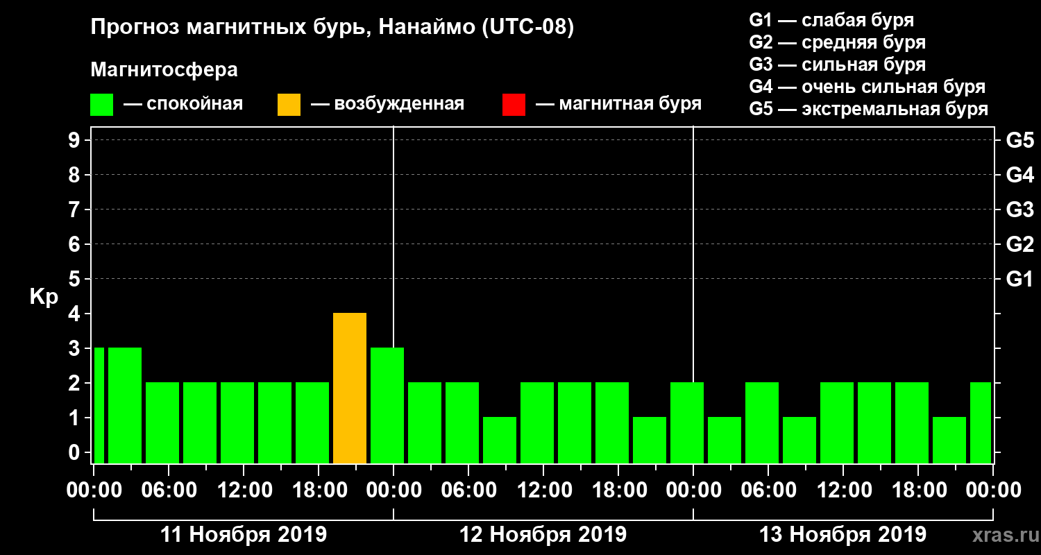 Прогноз магнитных бурь Нанаймо — 11 ноября 2019 года