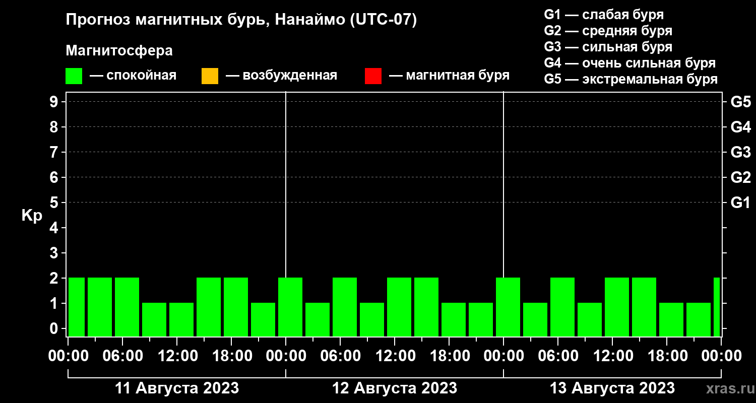 Прогноз магнитных бурь Нанаймо — 11 августа 2023 года
