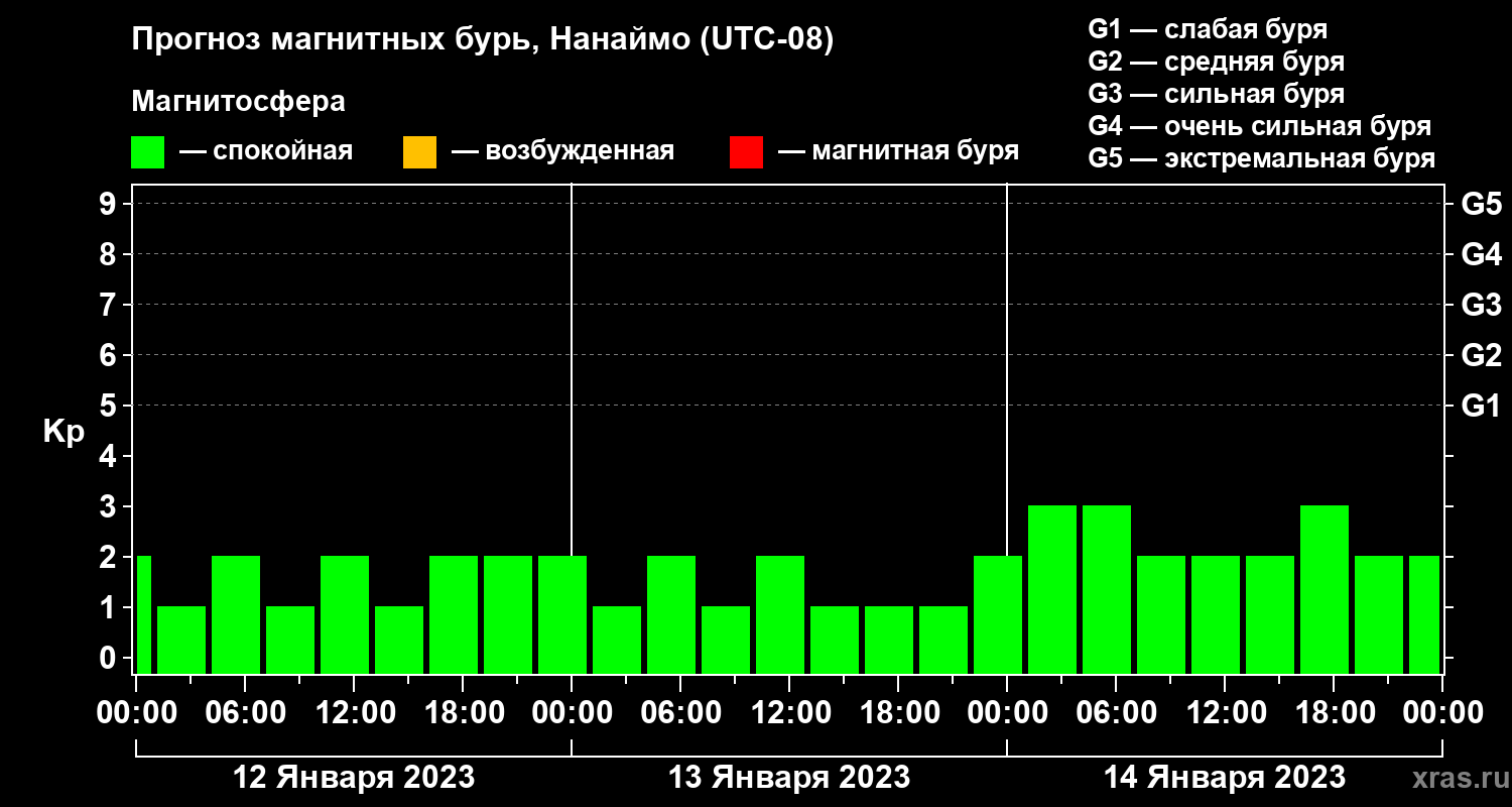 Прогноз магнитных бурь Нанаймо на 12 января 2023 года