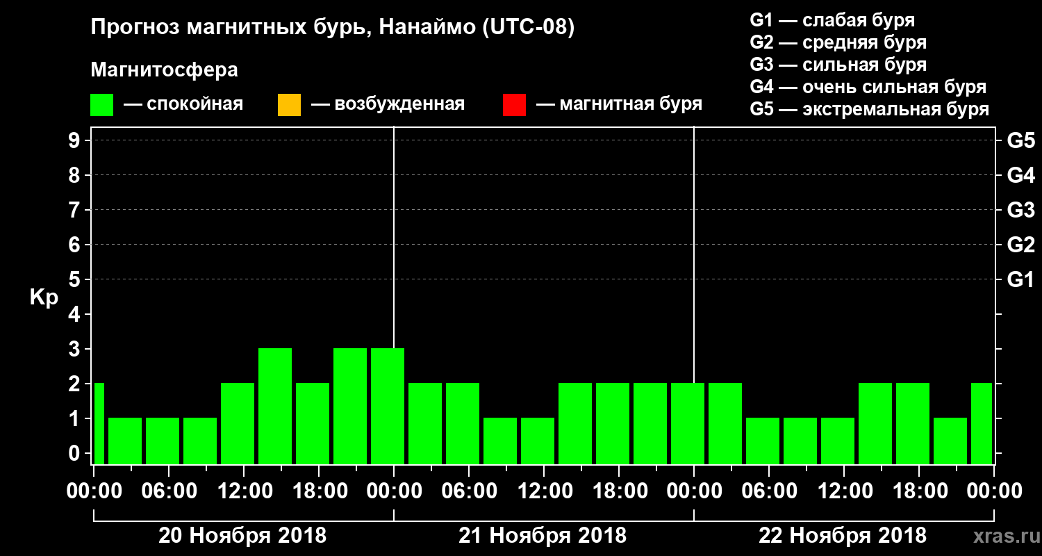 Прогноз магнитных бурь Нанаймо — 20 ноября 2018 года