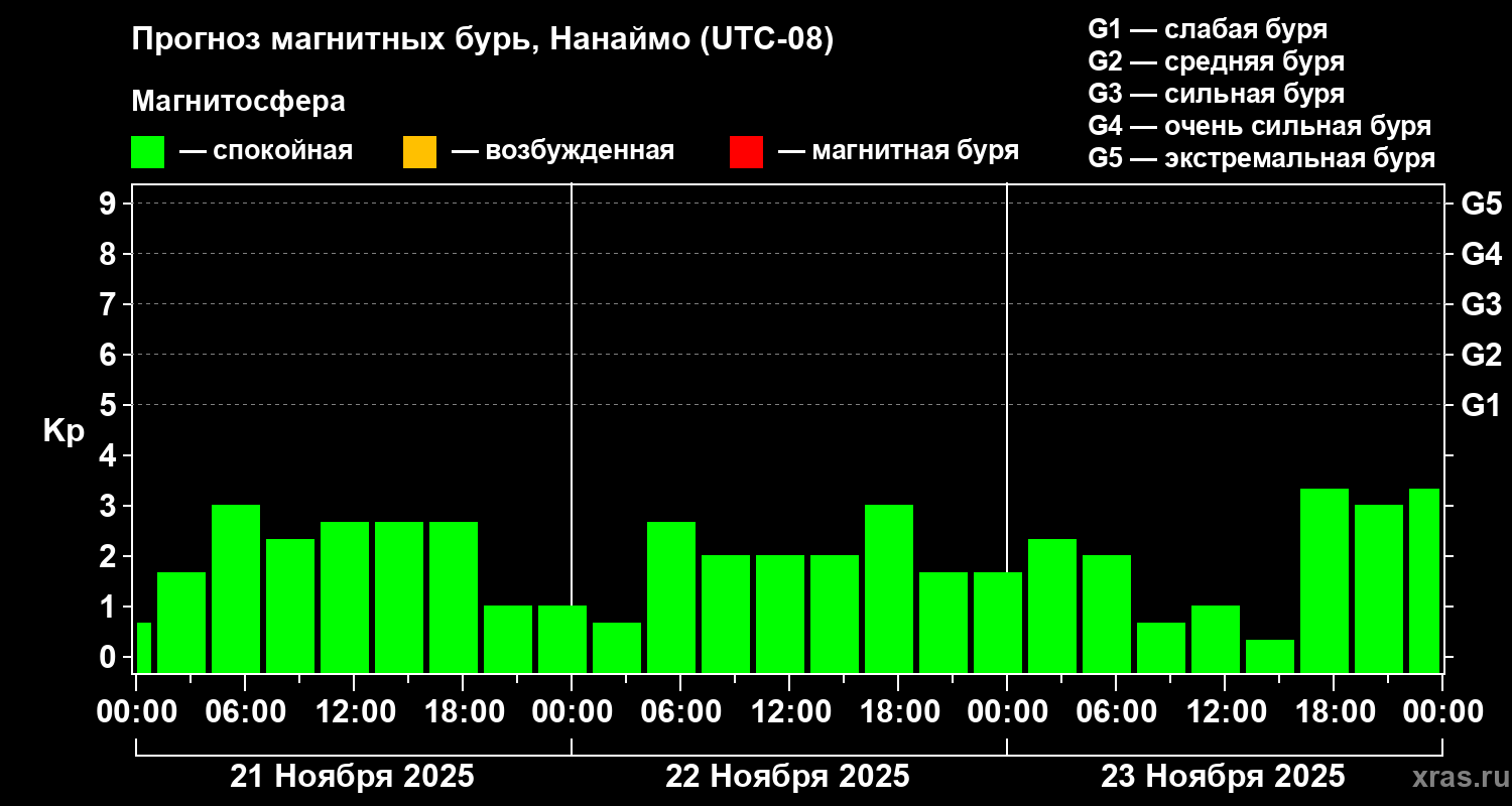 Прогноз магнитных бурь Нанаймо — 21 ноября 2025 года
