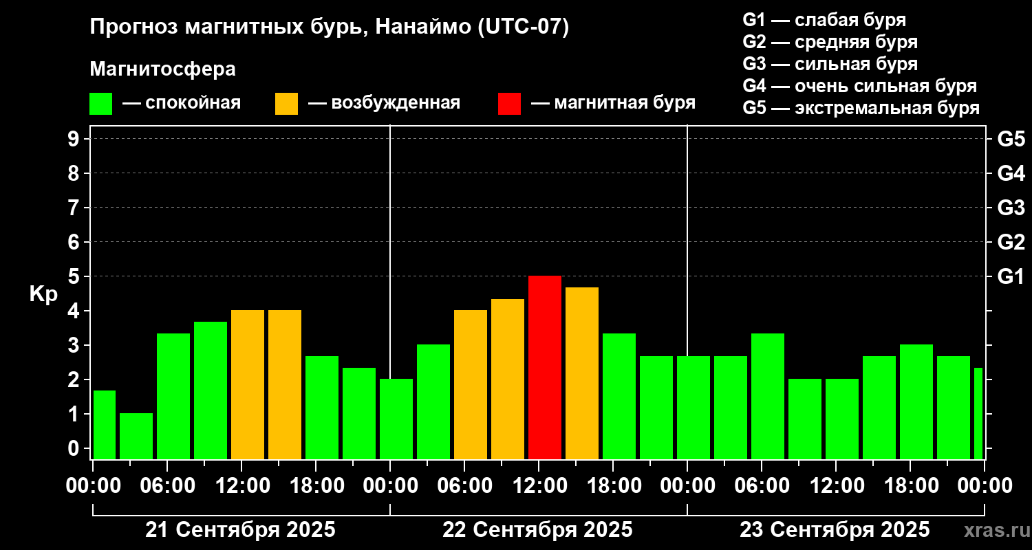Прогноз магнитных бурь Нанаймо на 21 сентября 2025 года
