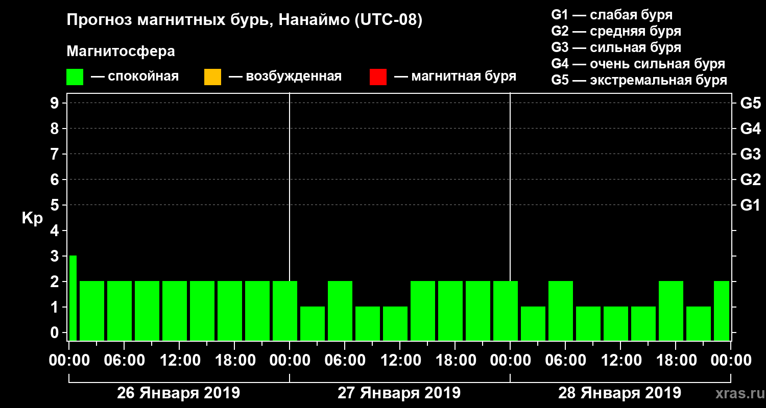 Прогноз магнитных бурь Нанаймо на 26 января 2019 года