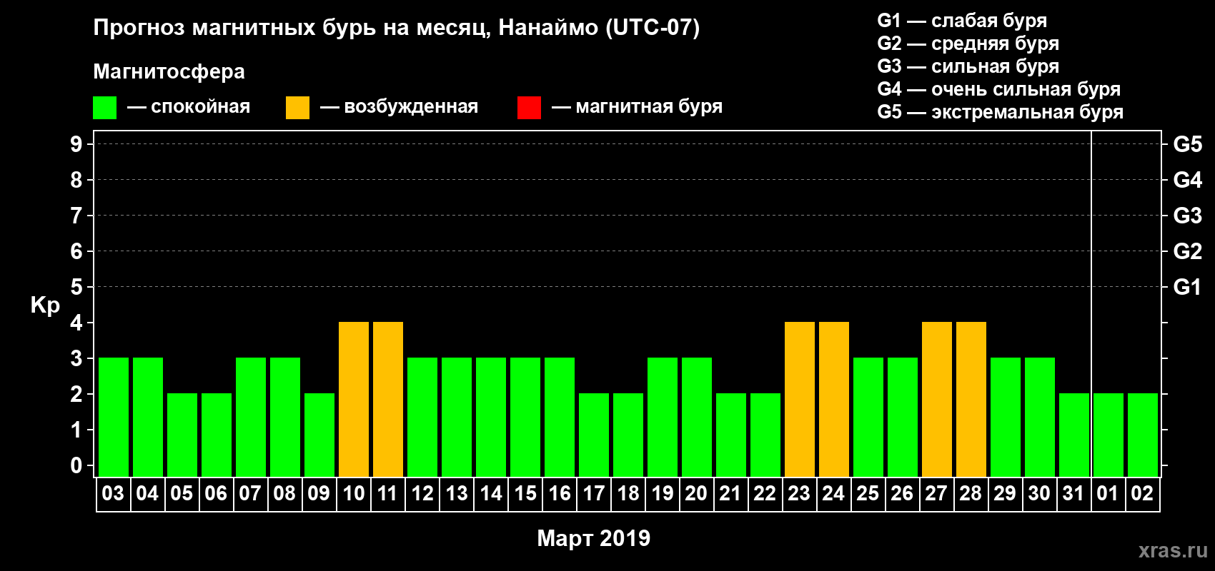 Прогноз магнитных бурь Нанаймо — 3 марта 2019 года