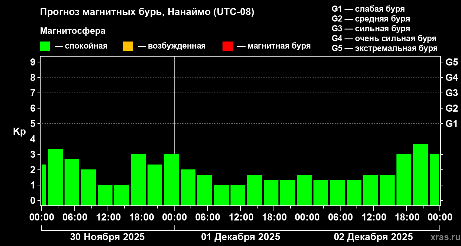 Прогноз магнитных бурь Нанаймо — 30 ноября 2025 года