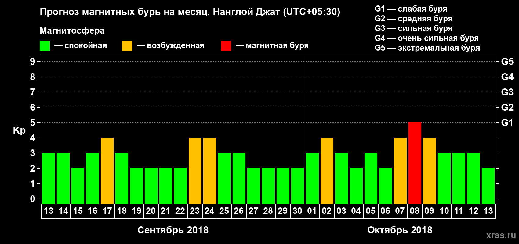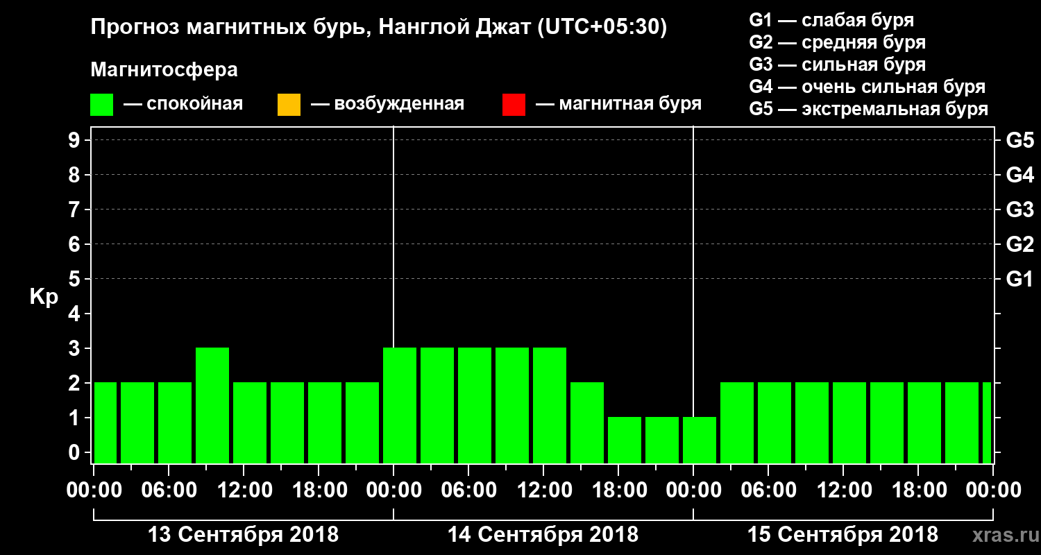 Прогноз магнитных бурь в Нанглой Джате — 13 сентября 2018 года