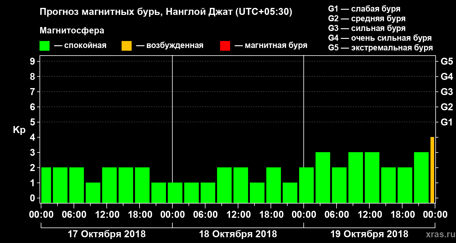 Прогноз магнитных бурь в Нанглой Джате — 17 октября 2018 года