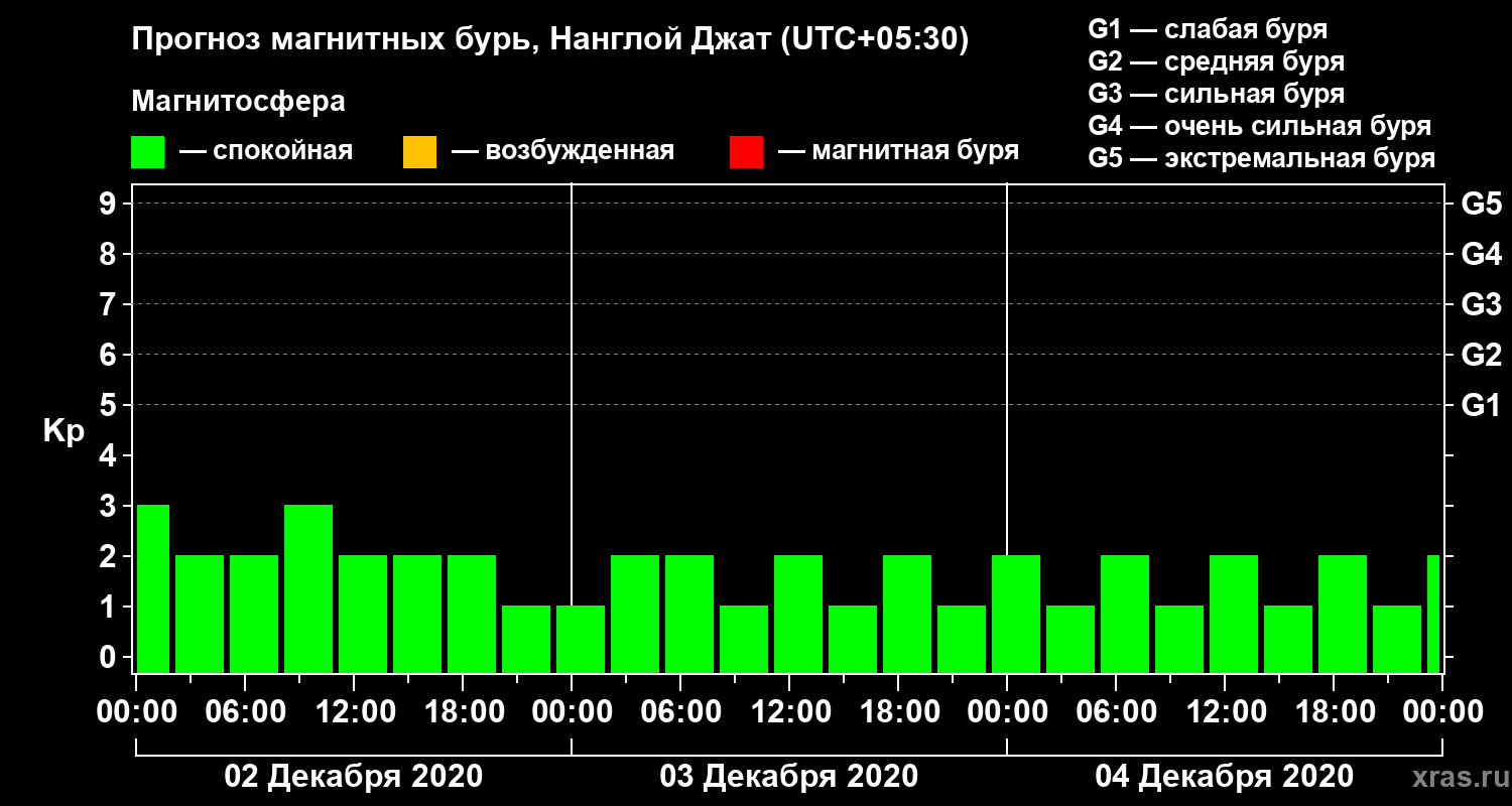 Прогноз магнитных бурь в Нанглой Джате на 2 декабря 2020 года