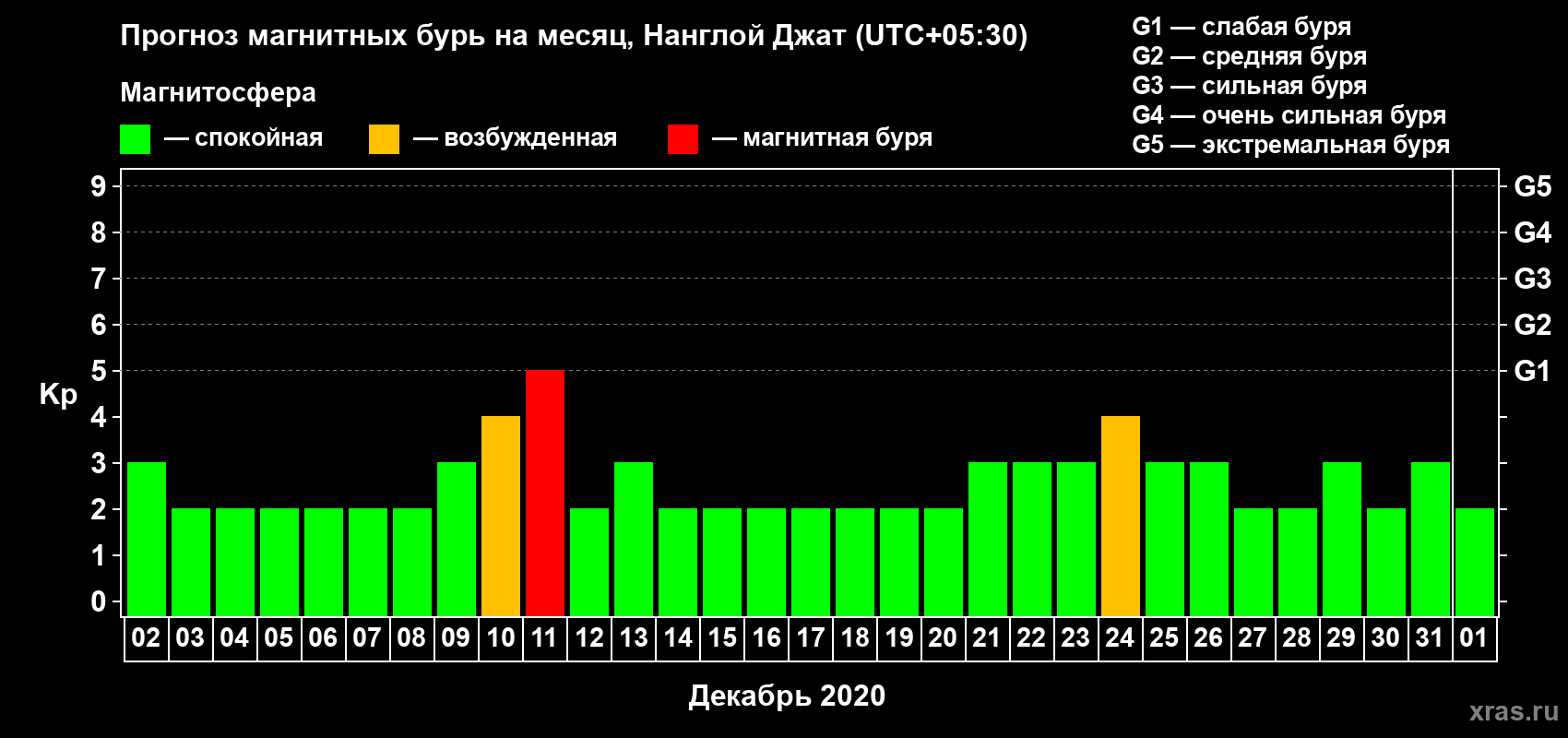 Прогноз магнитных бурь в Нанглой Джате — 2 декабря 2020 года