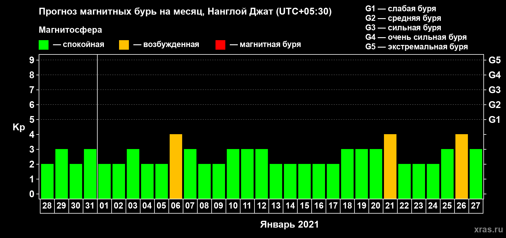 Прогноз магнитных бурь в Нанглой Джате — 28 декабря 2020 года