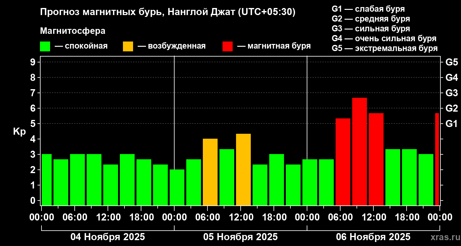 Прогноз магнитных бурь в Нанглой Джате — 4 ноября 2025 года