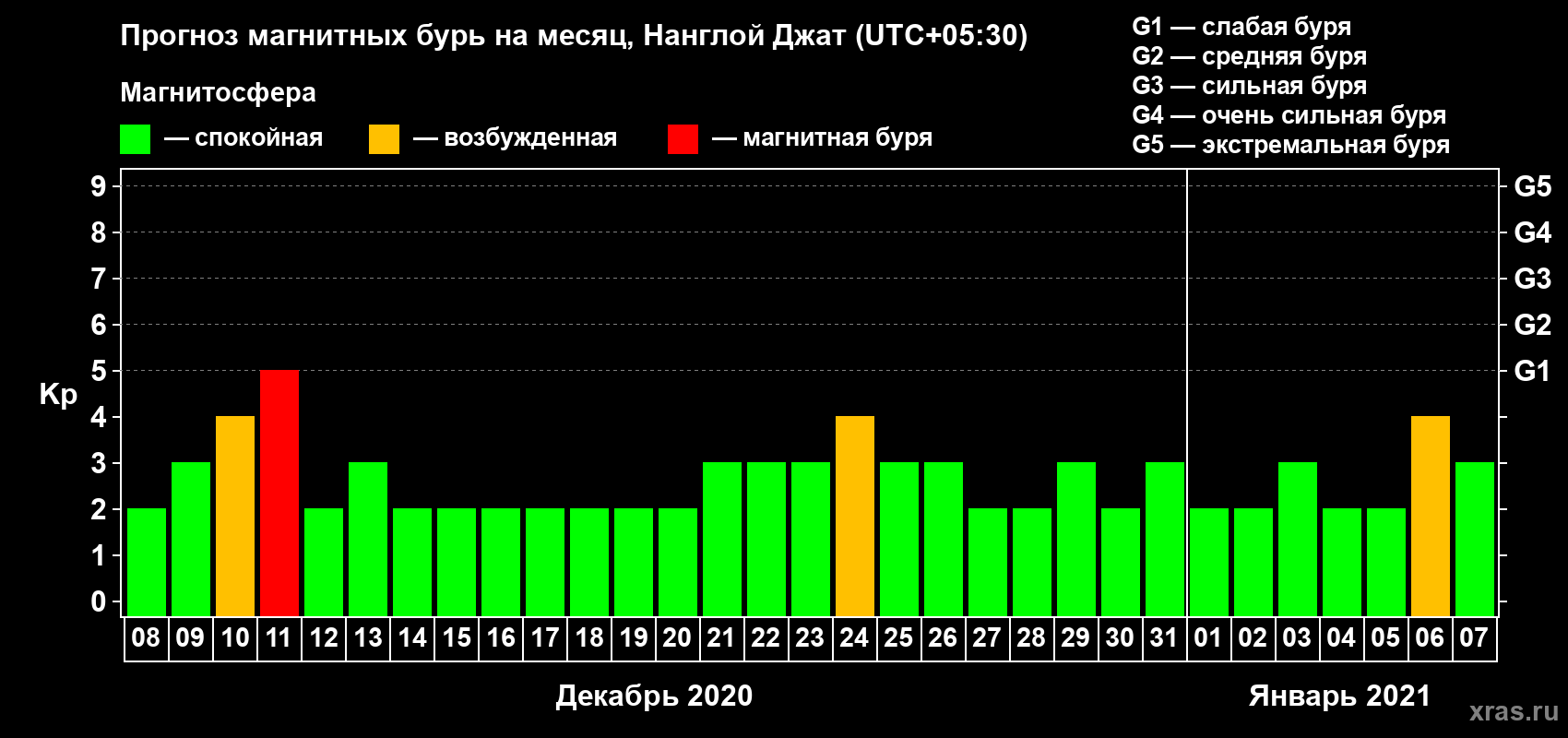 Прогноз магнитных бурь в Нанглой Джате — 8 декабря 2020 года
