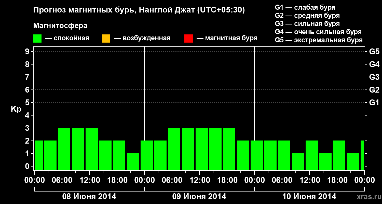Прогноз магнитных бурь в Нанглой Джате на 8 июня 2014 года