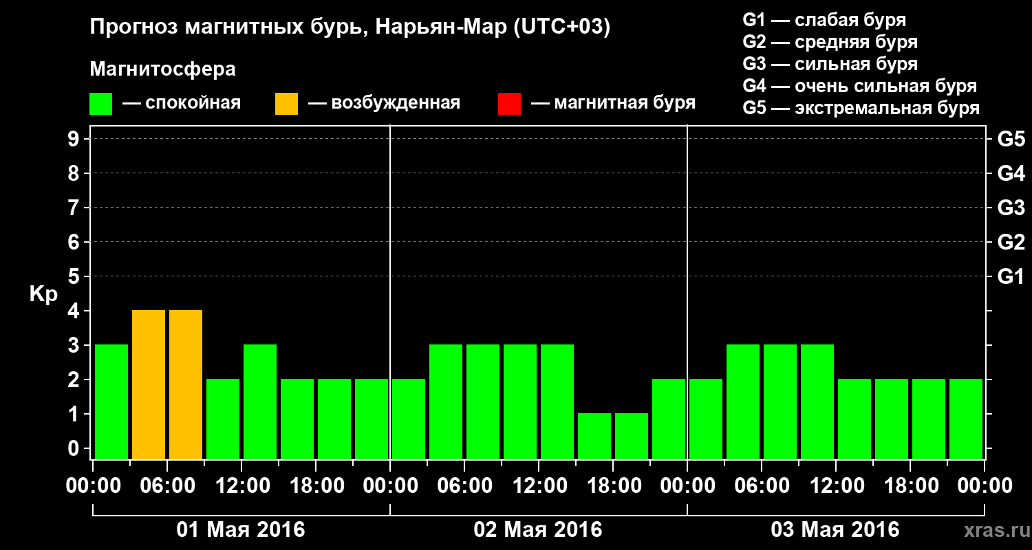 Прогноз магнитных бурь в Нарьян-Маре на 1 мая 2016 года