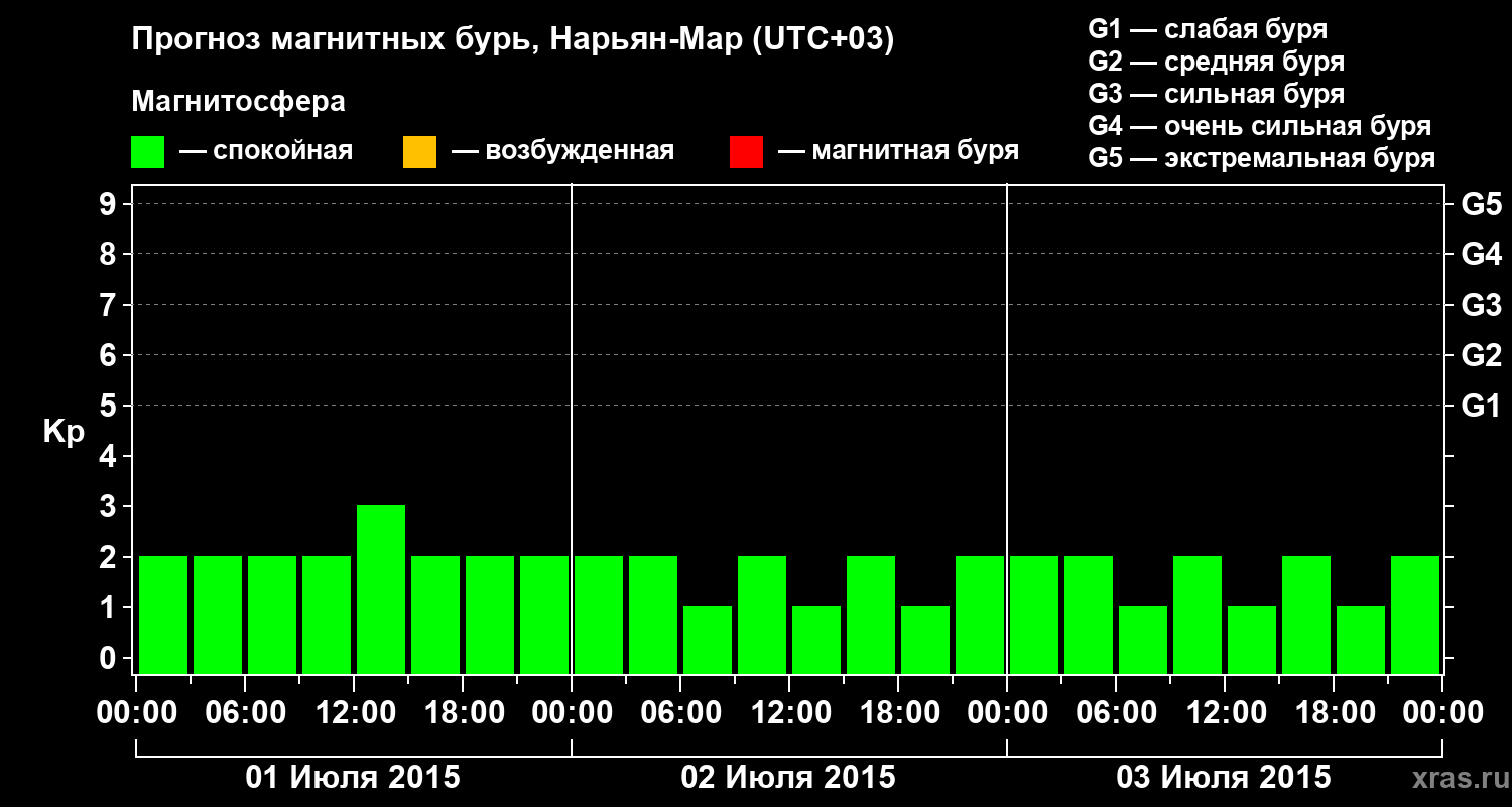 Прогноз магнитных бурь в Нарьян-Маре на 1 июля 2015 года