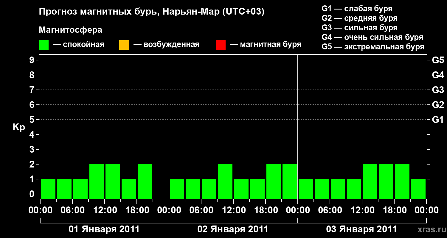 Прогноз магнитных бурь в Нарьян-Маре — 1 января 2011 года