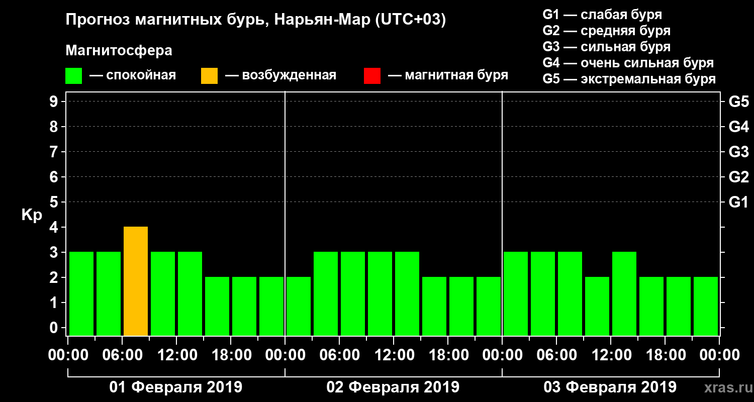 Прогноз магнитных бурь в Нарьян-Маре на 1 февраля 2019 года