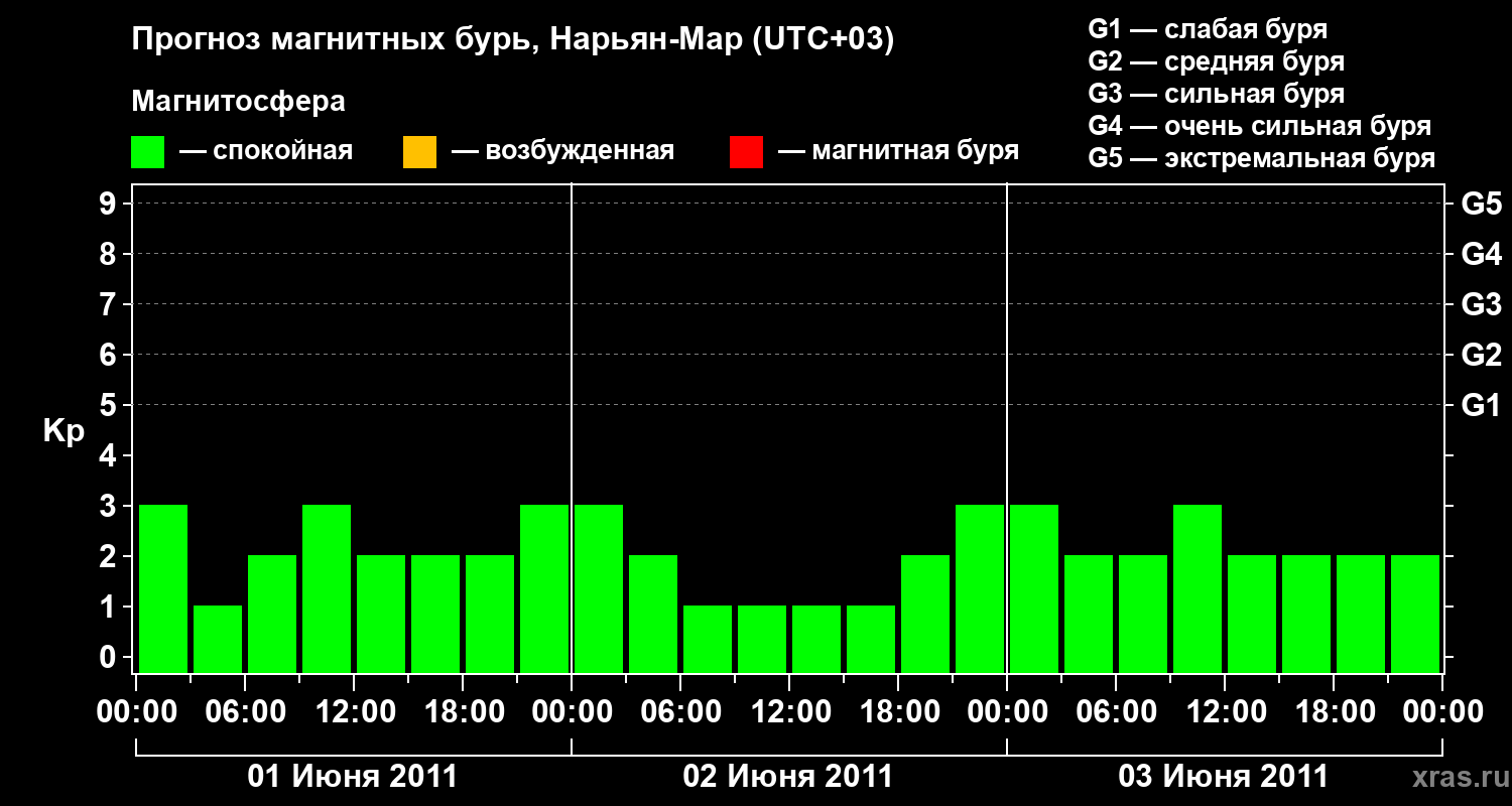 Прогноз магнитных бурь в Нарьян-Маре — 1 июня 2011 года