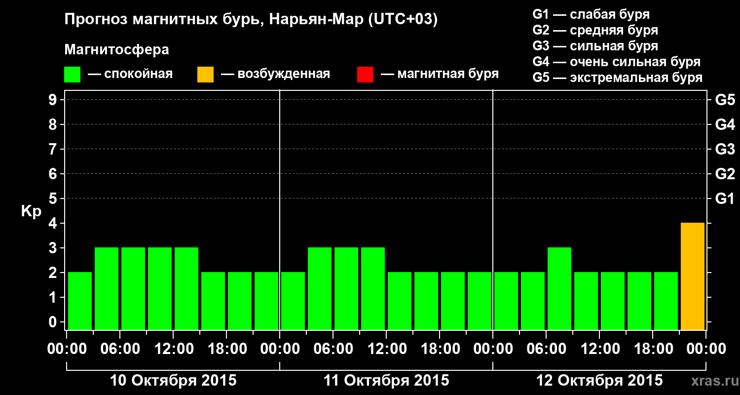 Прогноз магнитных бурь в Нарьян-Маре на 10 октября 2015 года