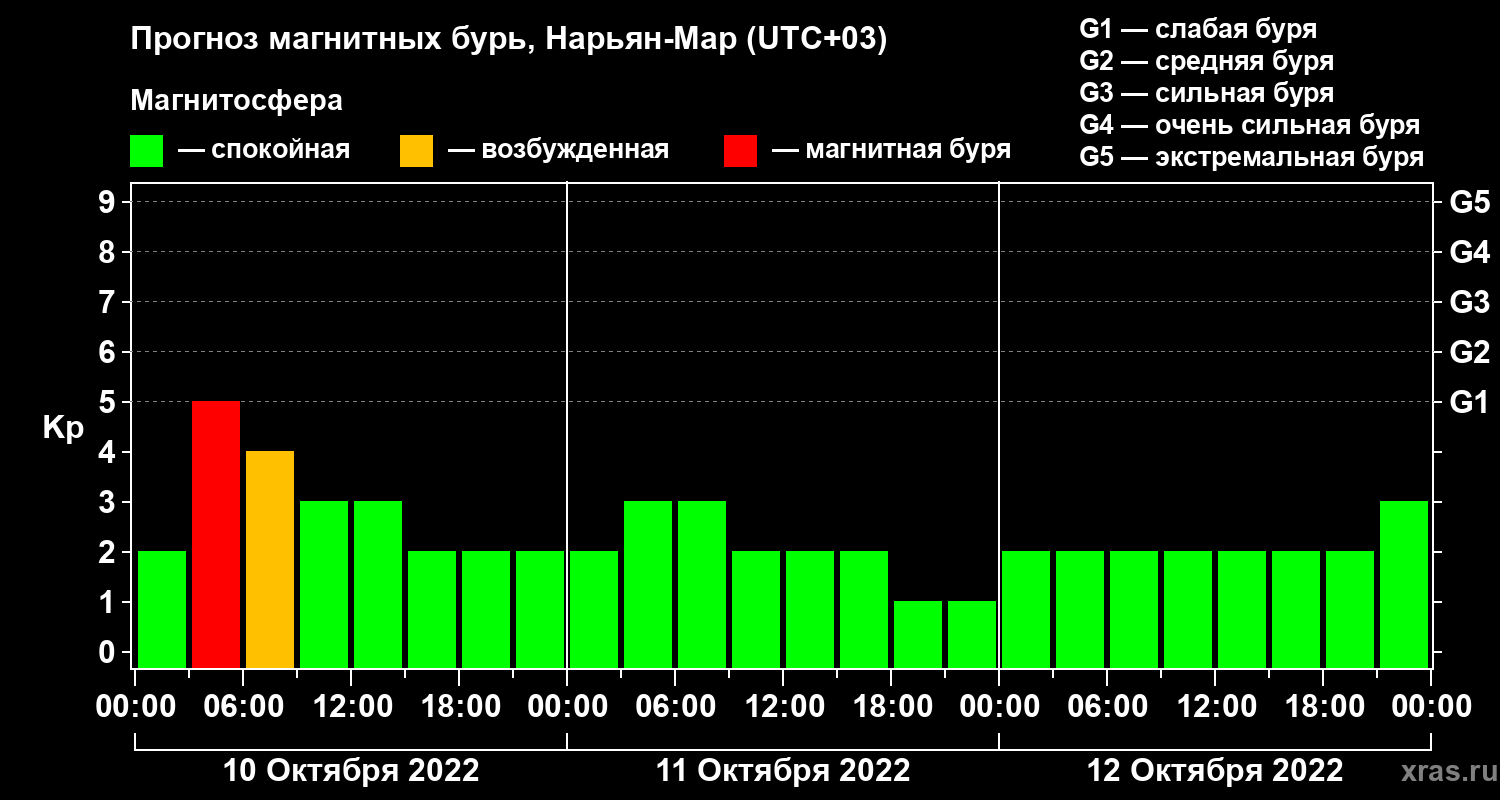 Прогноз магнитных бурь в Нарьян-Маре на 10 октября 2022 года
