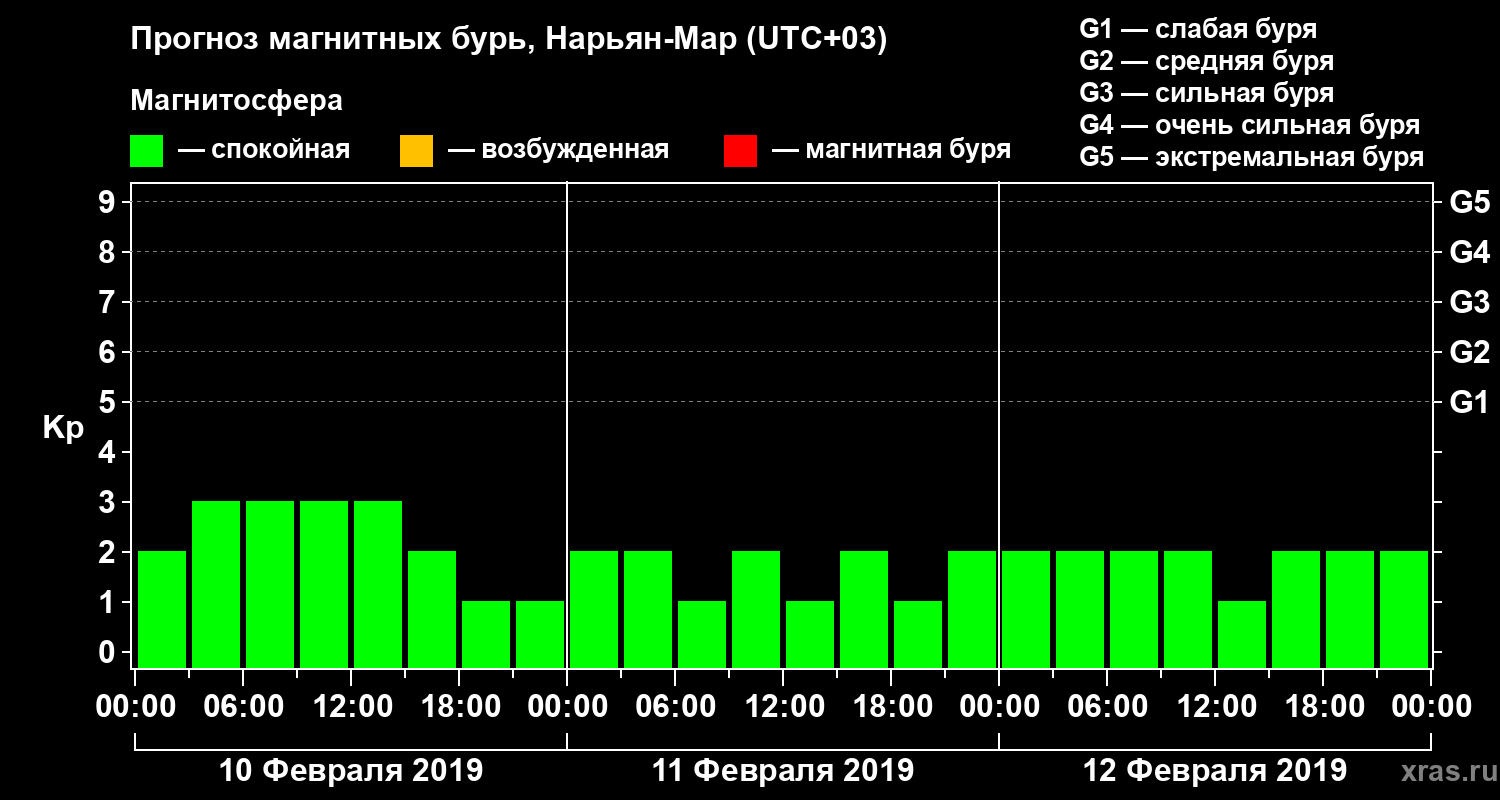Прогноз магнитных бурь в Нарьян-Маре на 10 февраля 2019 года