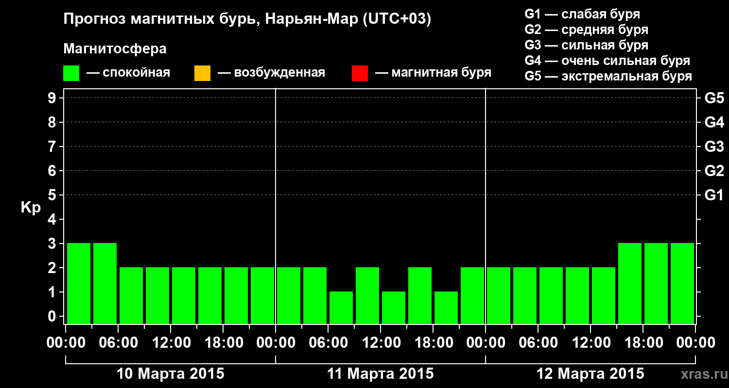 Прогноз магнитных бурь в Нарьян-Маре на 10 марта 2015 года