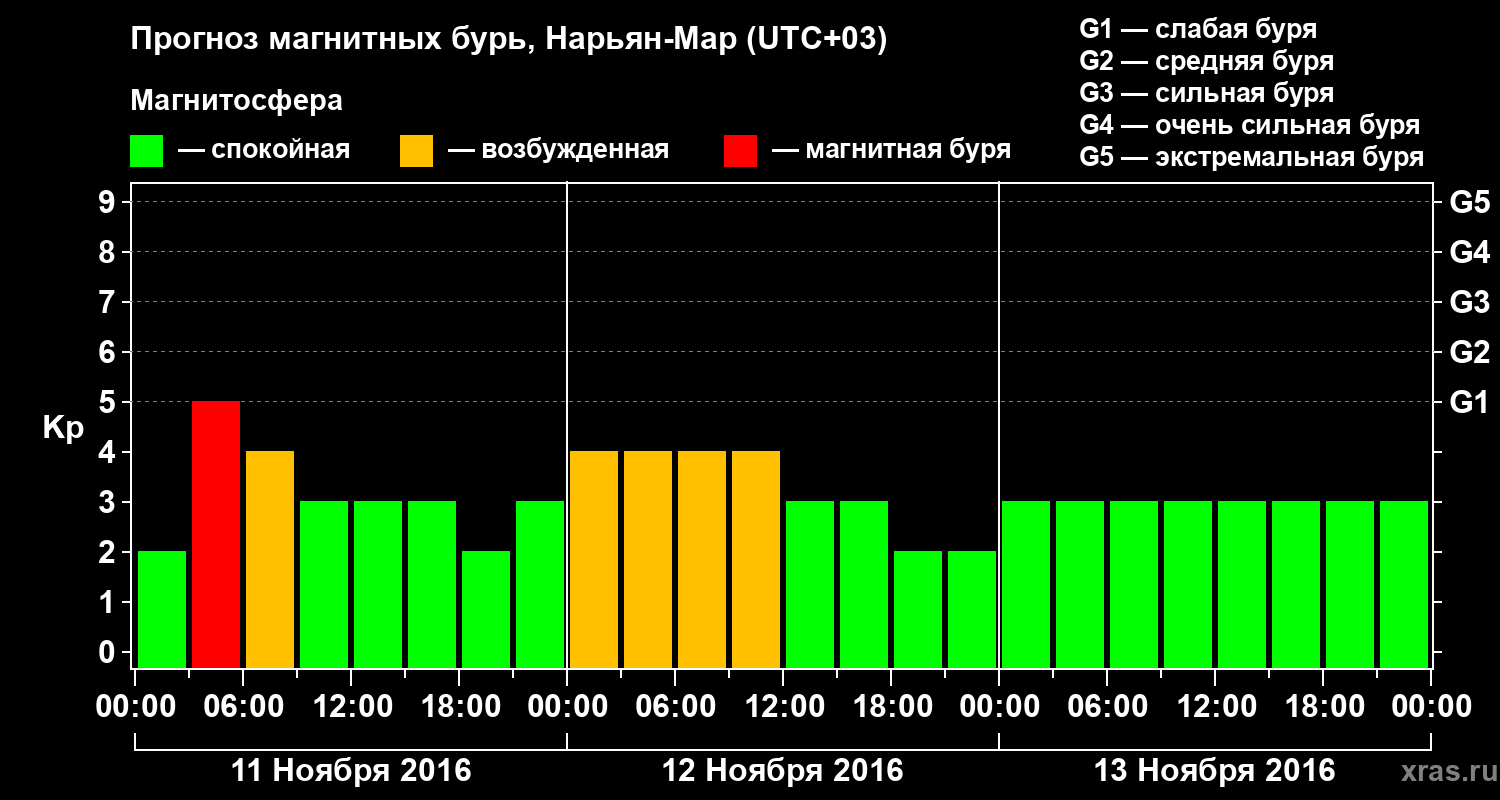 Прогноз магнитных бурь в Нарьян-Маре на 11 ноября 2016 года