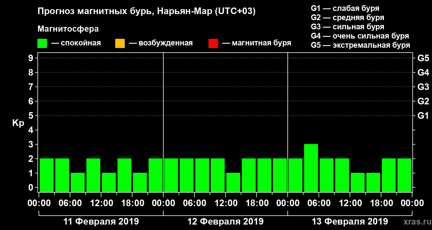 Прогноз магнитных бурь в Нарьян-Маре на 11 февраля 2019 года