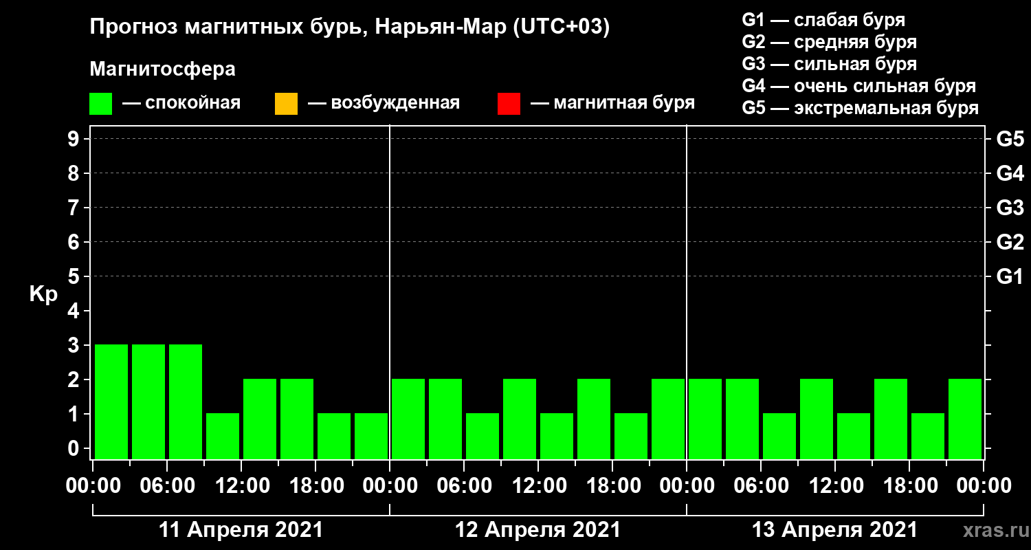 Прогноз магнитных бурь в Нарьян-Маре на 11 апреля 2021 года
