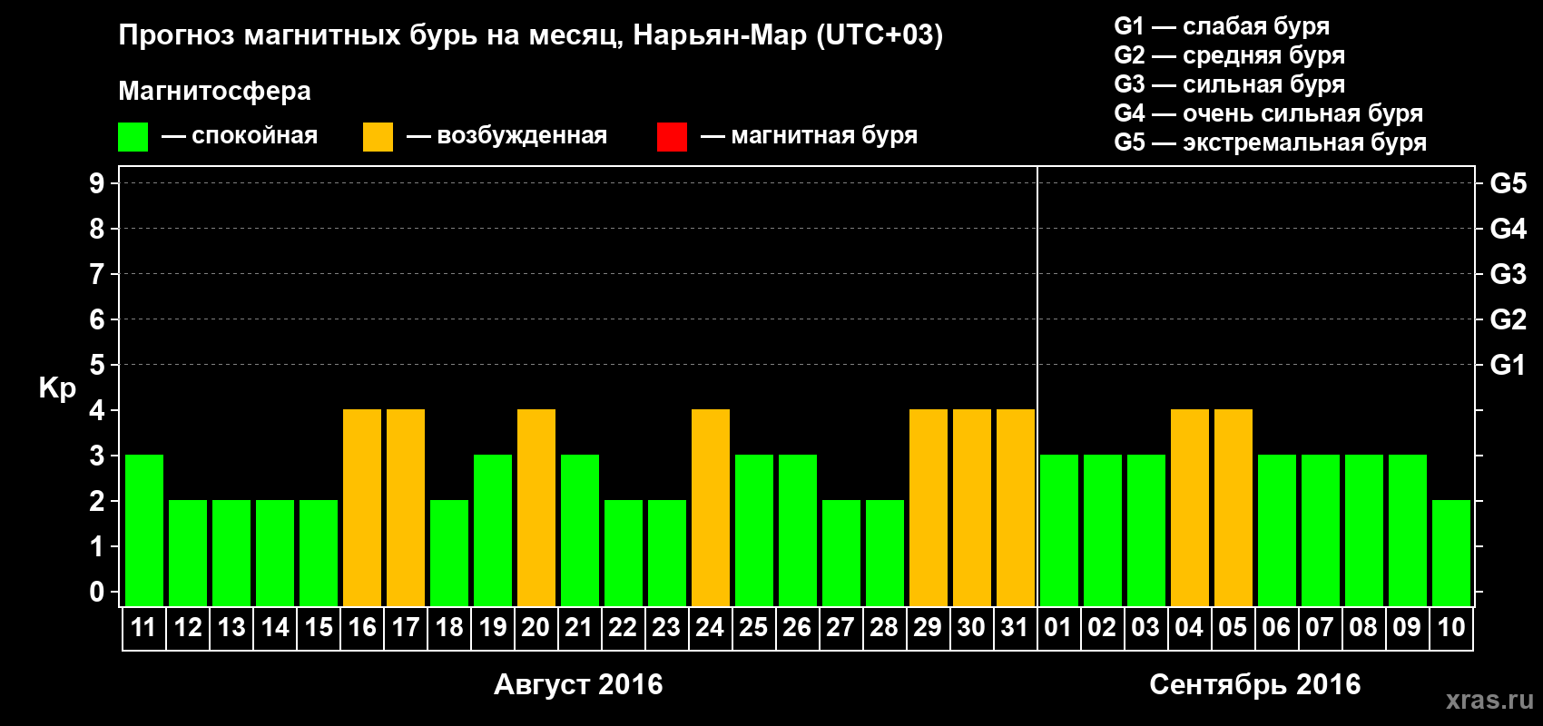Прогноз магнитных бурь в Нарьян-Маре на 11 августа 2016 года